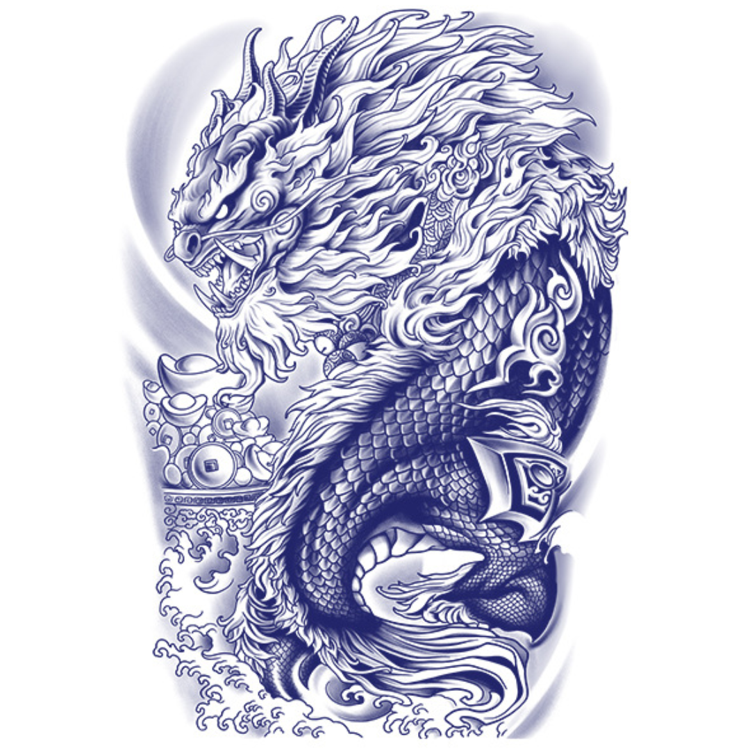 1 Sheet Dragon Chinese Full Back Semi-Permanent Tattoos