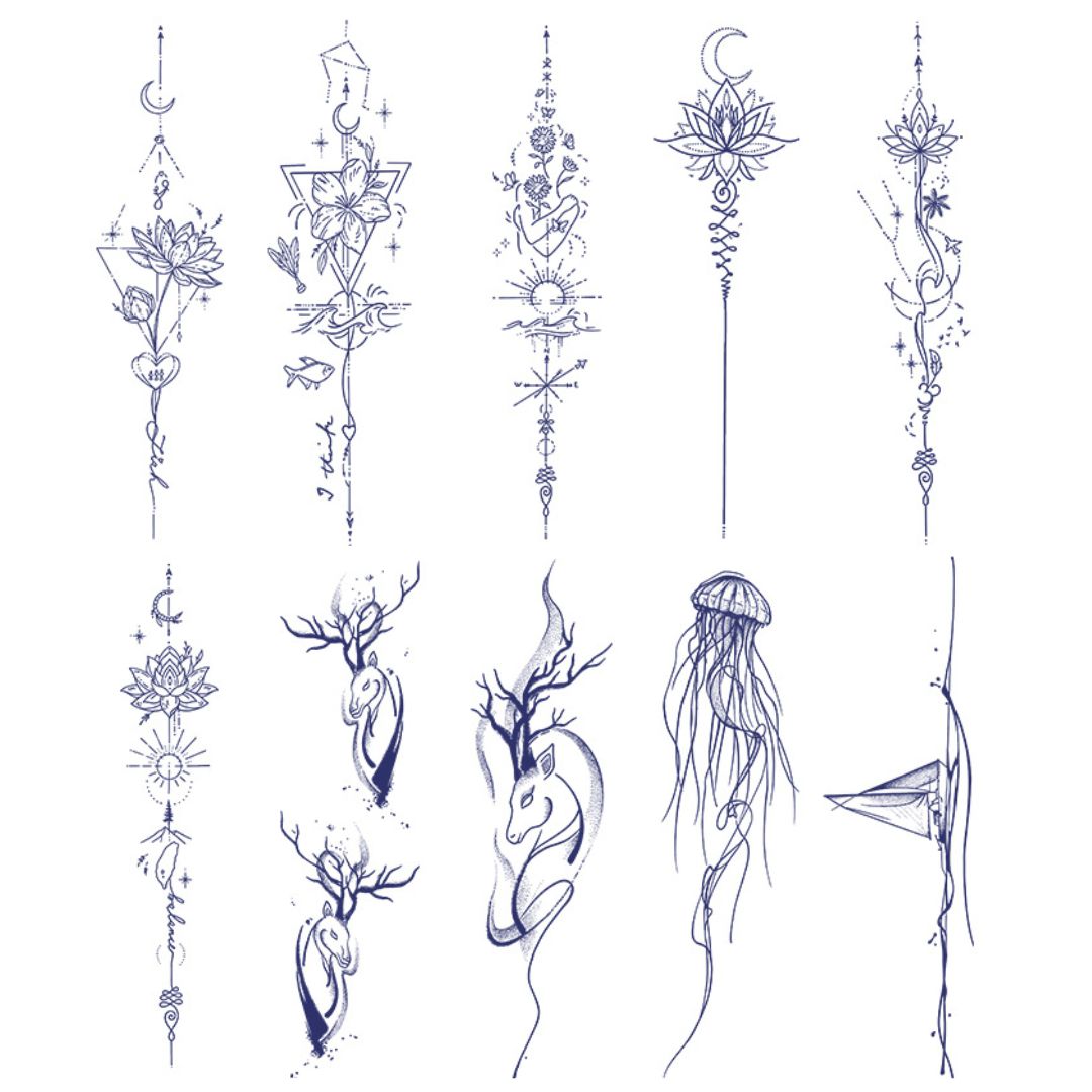 10 Sheets Flower Deer Jelly fish Boat Chest Arm Body Semi Permanent Stickers
