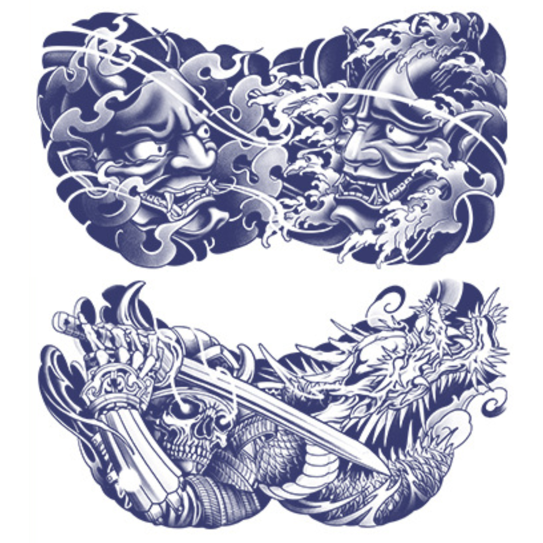 2 Sheet Death Samurai Japanese Chest Shoulder Semi Permanent Tattoos