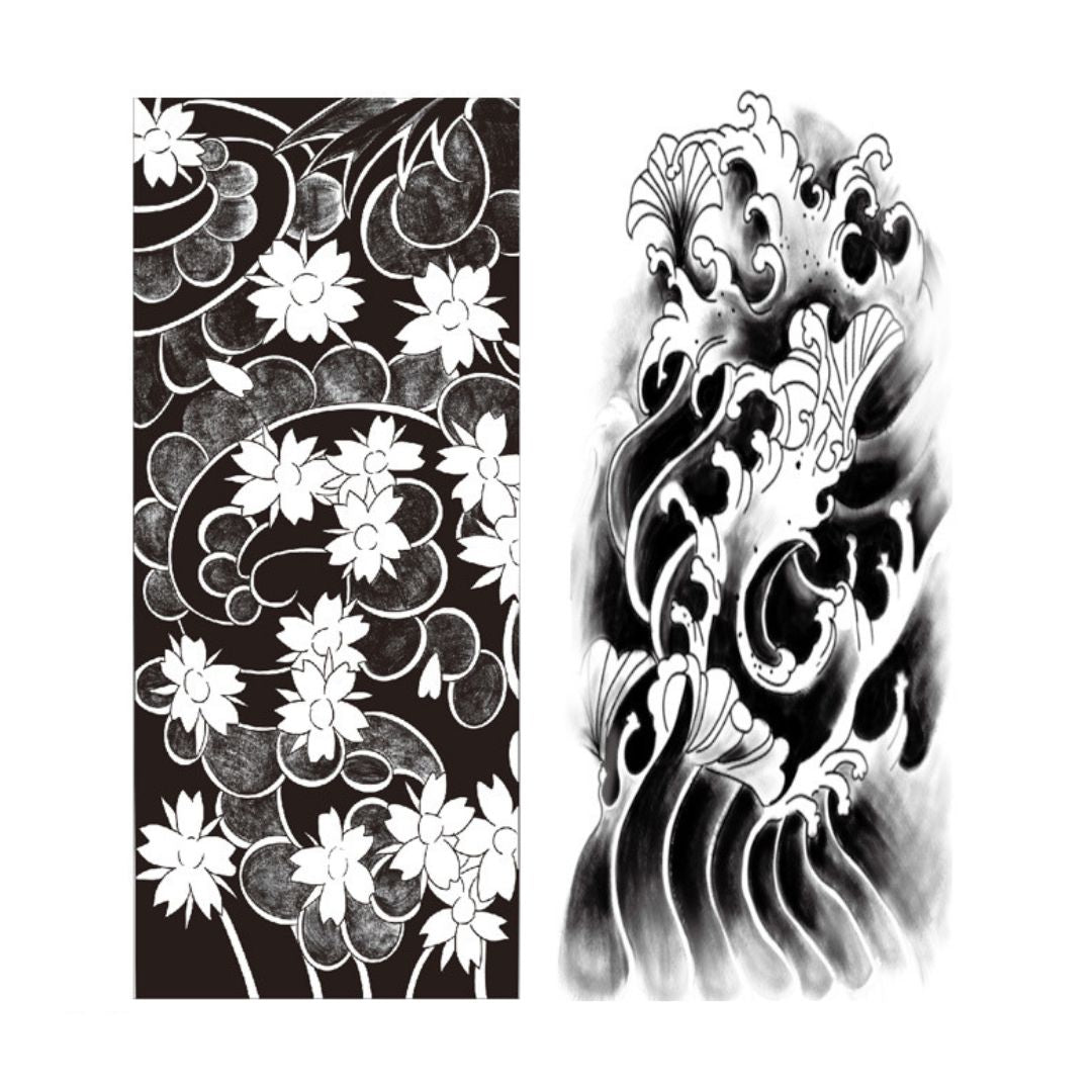 2 Sheets Full Arm Black Flower Wave Semi-Permanent Tattoo