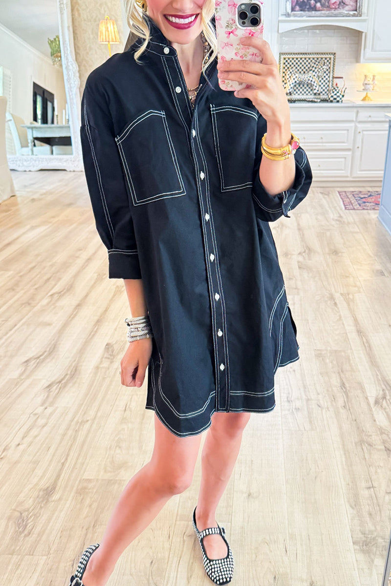We're glad you've clicked on our new 3/4 Sleeve Button Down Dress as we're really into its casual vibes! The Button Down cut make this a great choice for any stylish girl.
