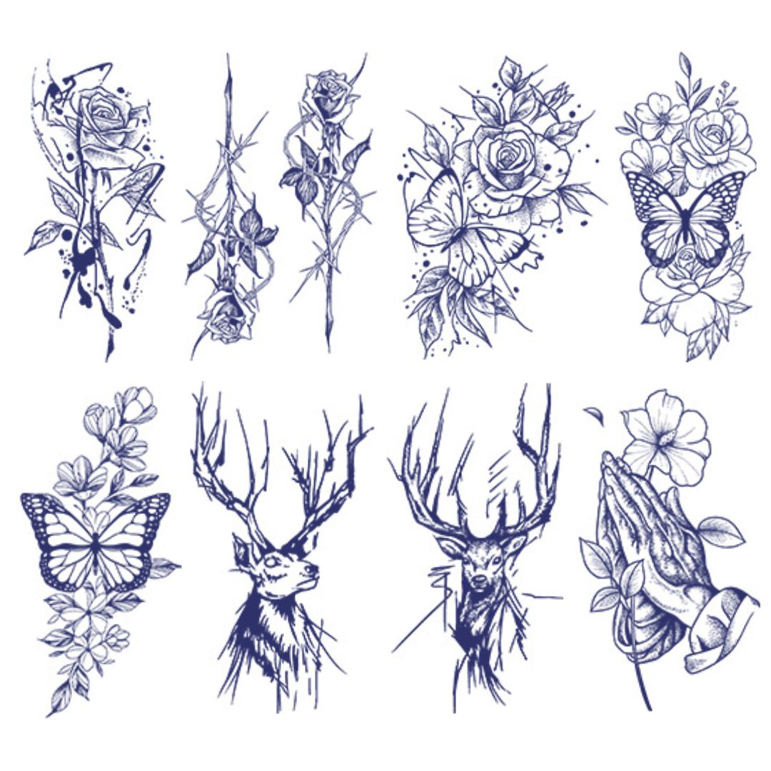 8 Sheets Rose Butterfly Deer Semi-Permanent Tattoo Stickers