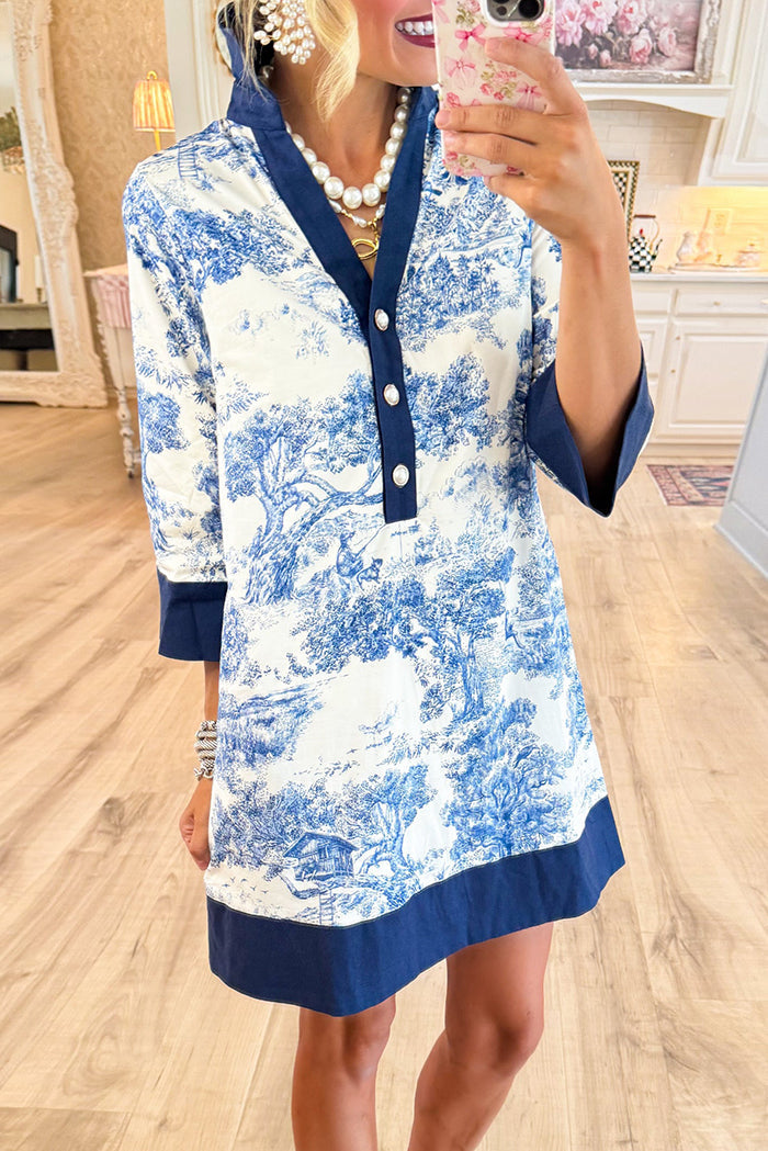 We're glad you've clicked on our new Blue Toile 3/4 Sleeve Dress as we're really into its casual vibes! The Toile cut make this a great choice for any stylish girl.