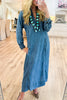 Denim Caftan Pockets Midi Dress