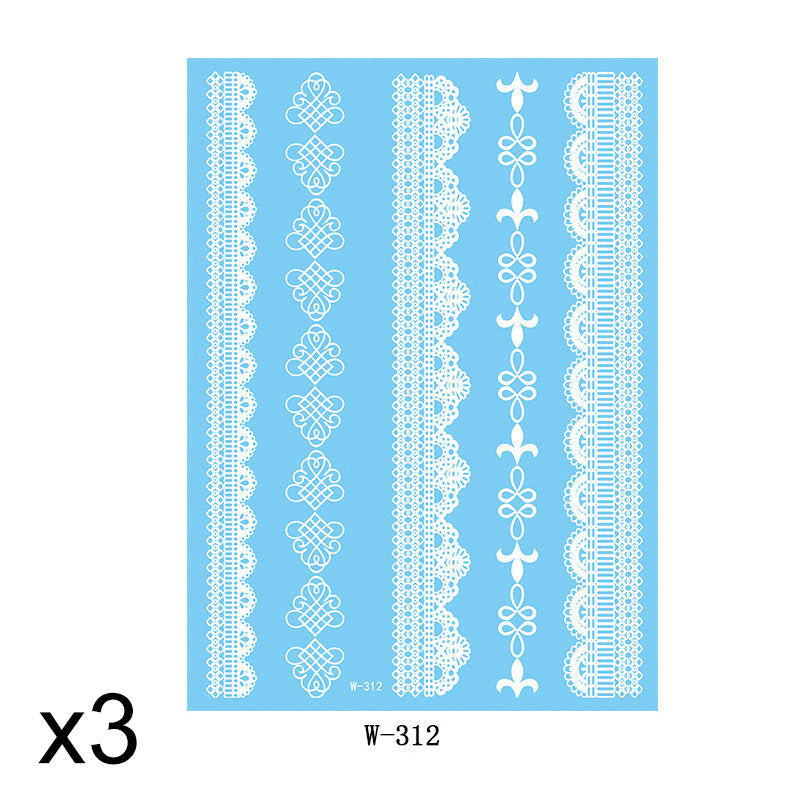 Elegant White Lace Tattoo Stickers 3 PCS Set