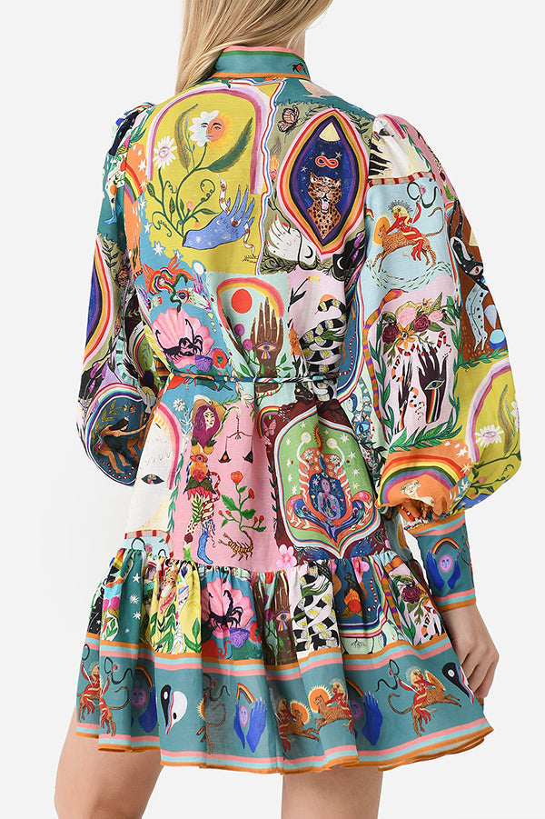 Floral Print Pleated Button Dress