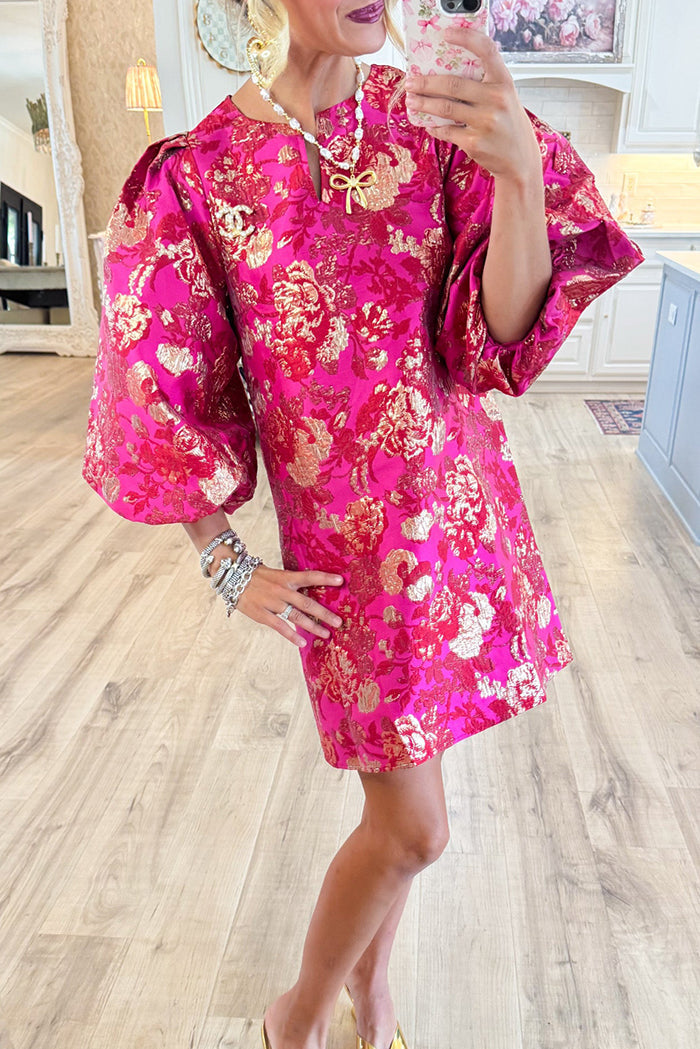 Hot Pink Gold Accent Jacquard Shift Dress