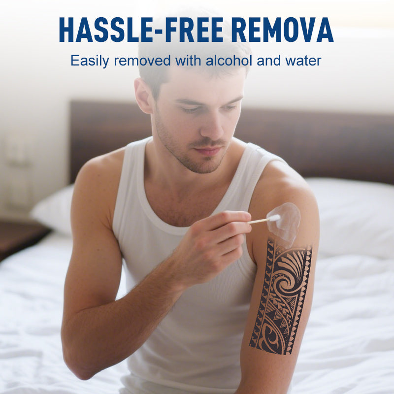 EASY APPLICATION AND REMOVAL: Simply apply, wait a moment, and your tattoo is set. Removing it is just as easy, requiring a quick wipe with alcohol or water for a hassle-free experience.