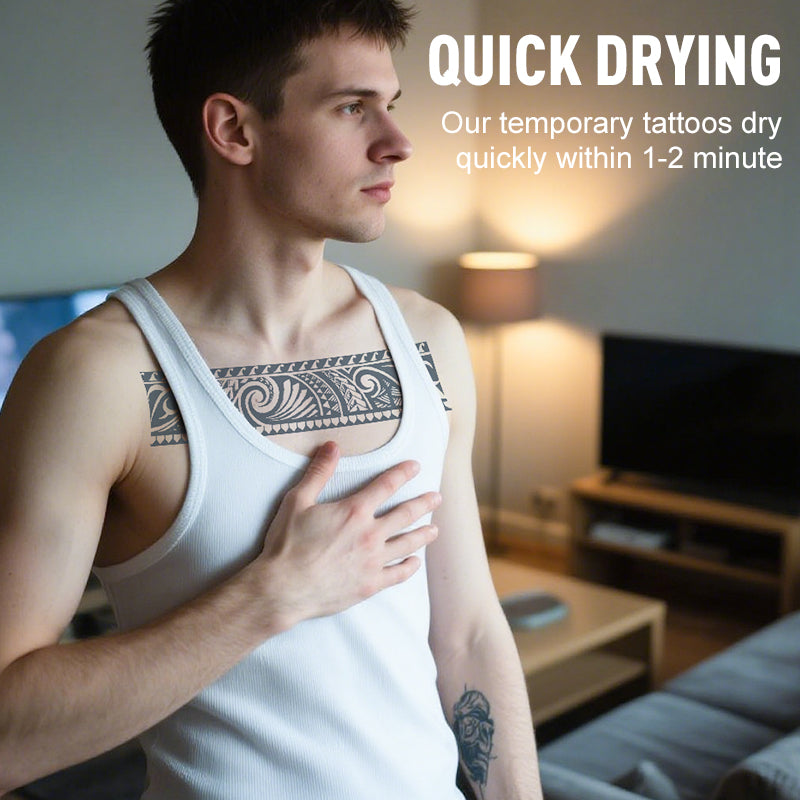 QUICK DRYING AND PROFESSIONAL FINISH: Our temporary tattoos dry quickly within 1-2 minute, ensuring a smooth and professional finish. This allows you to flaunt your new look almost instantly with no waiting time.