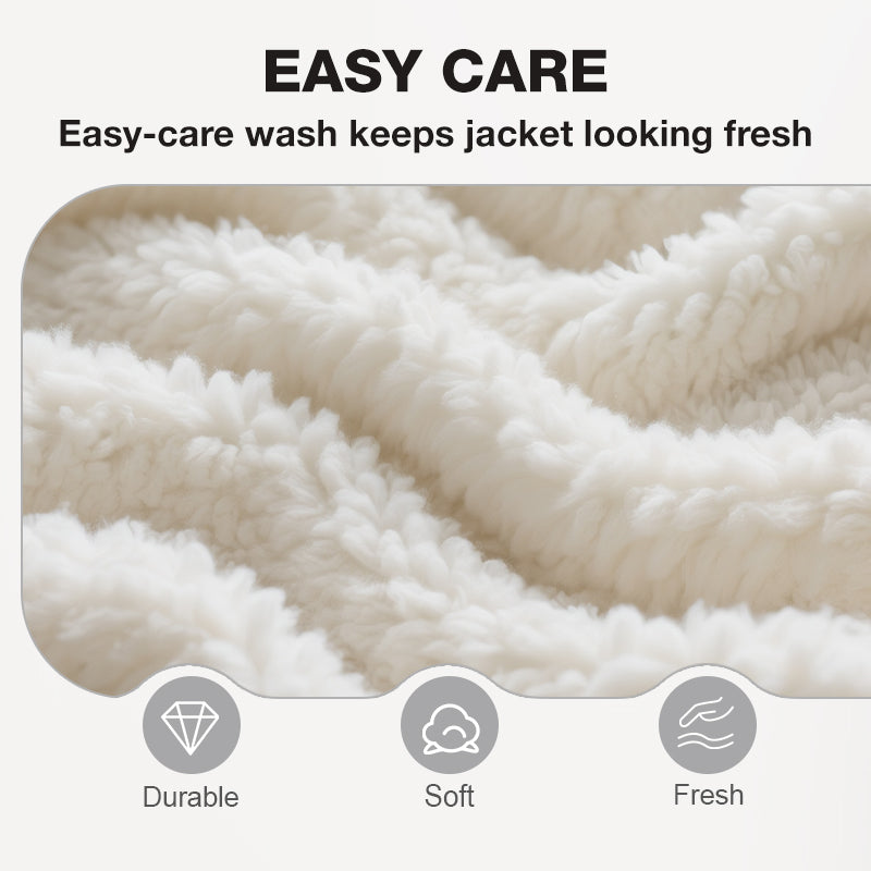 SOFT LINING - Lined with plush faux Sherpa, this jacket feels soft against your skin while providing gentle warmth. Cozy on cooler days without adding bulk, it keeps you comfortable all day. The interior adds an inviting touch that blends warmth with casual, everyday style.
