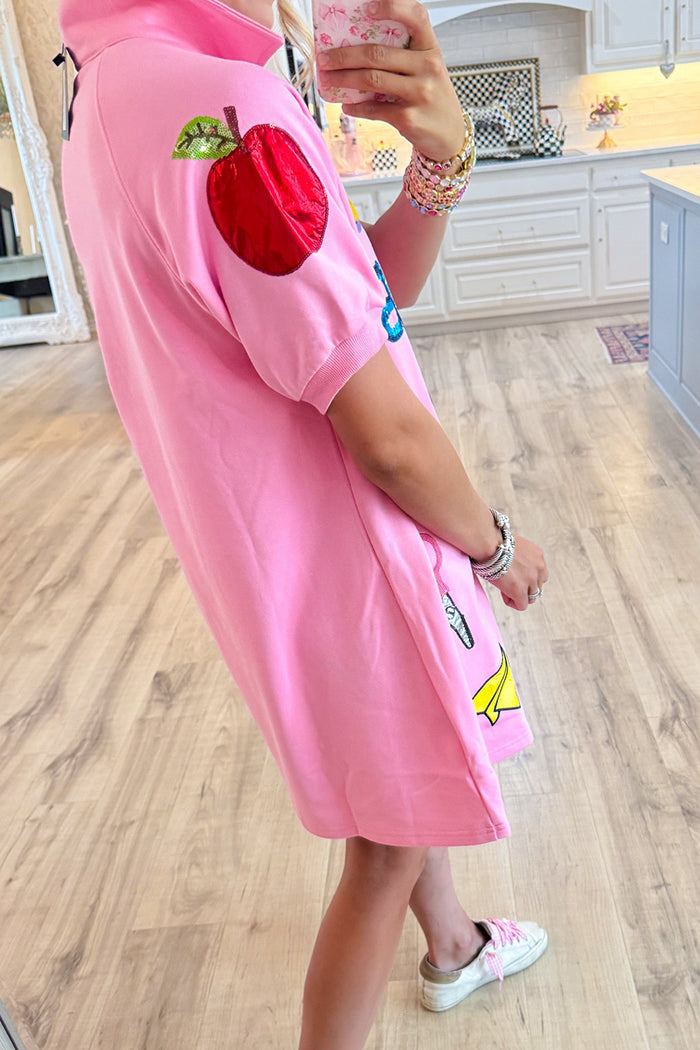We're glad you've clicked on our new Pink School Days Sticker Dress as we're really into its casual vibes! The cute pattern cut make this a great choice for any stylish girl.