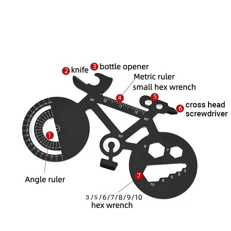 UNIQUE BICYCLE SHAPE - Features a creative and stylish bicycle silhouette that stands out from typical multi-tools. Its distinctive appearance makes it a thoughtful and practical gift for anyone who loves cycling or unique gadgets.