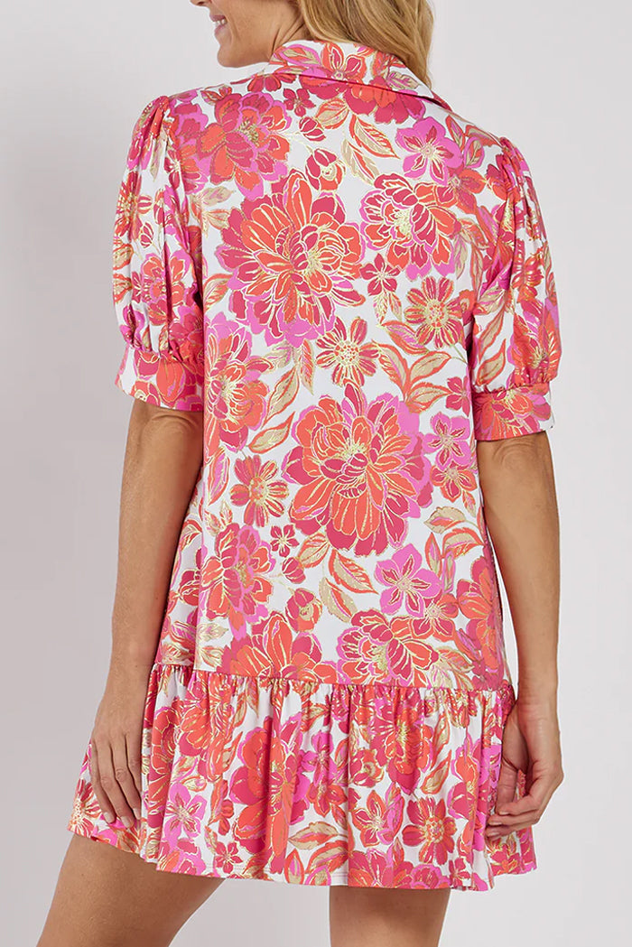 Meet Tierney, a short sleeve dress with a modern shape featuring a charming point collar, V-neckline, puff sleeves, and convenient pockets! Embrace its playful flair with delightful flounce detail. This dress is the epitome of versatility and femininity, making it a fabulous addition to your wardrobe.